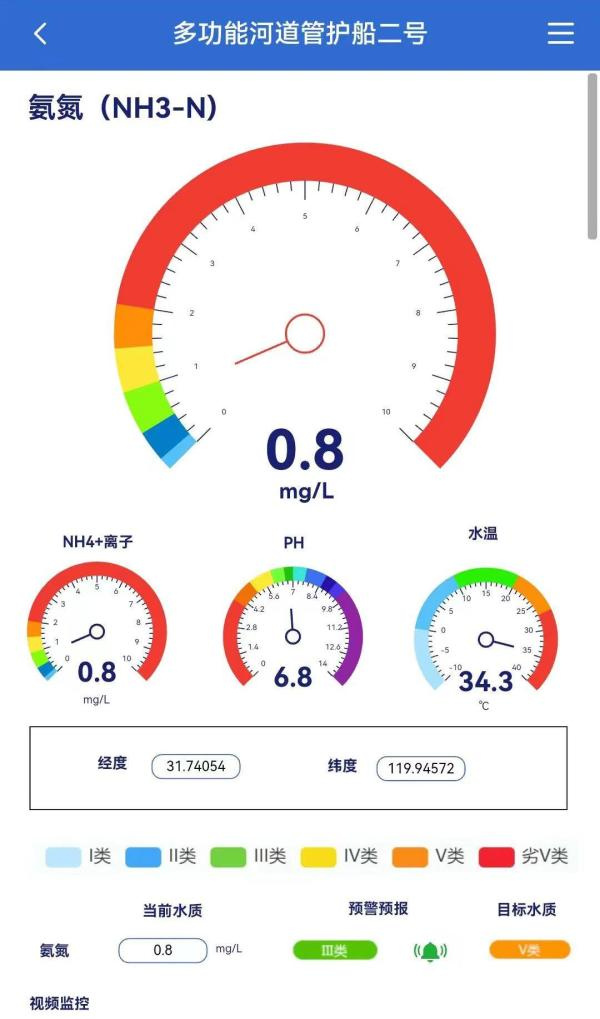 据悉,该水环境机器人监测系统采集的水质指标检测数据、现场视频影像均可反馈至物联网大数据云平台,氨氮浓度、总磷、水温等数据在手机端上“一目了然”。