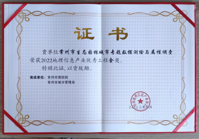 中国地理信息产业协会近日公布2022地理信息产业优秀工程评选结果,“常州市生态园林城市专题数据测绘与属性调查”项目荣获金奖,这是唯一斩获金奖的城市园林绿化项目。