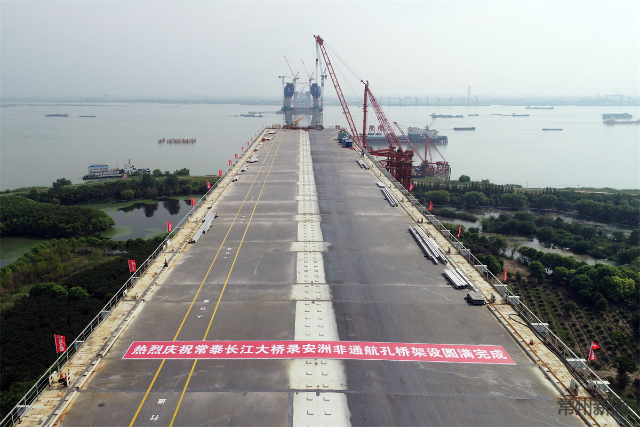 常泰长江大桥录安洲非通航孔桥架梁完成
