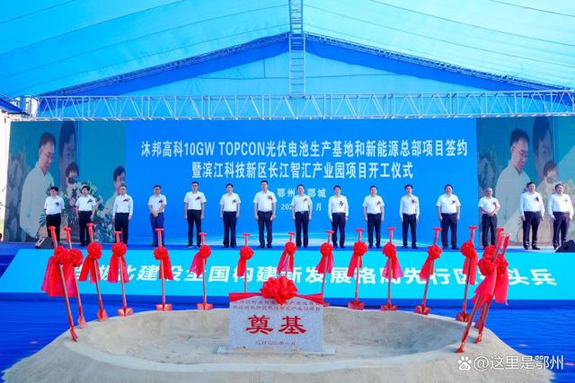 沐邦高科10GW TOPCON光伏电池生产基地及新能源总部项目,是鄂州市首个光伏电池项目,也是迄今全省规模最大的光伏电池项目。