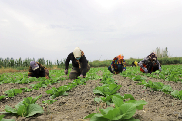 眼下,博湖县8000余亩白菜、莲花白等各类复播蔬菜长势喜人,进入田间管理的关键时期,菜农们正抓紧有利时机,开展田间管理工作,田间地头到处是一派劳作的繁忙景象。