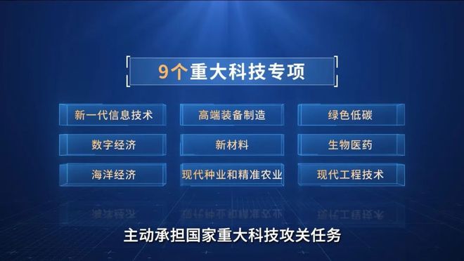 加大关键核心技术攻关力度,启动9个重大科技专项。主动承担国家重大科技攻关任务,部省市联动实施国家重点专项。引导创新企业建设企业技术中心、工程技术研究中心、新型研发机构,构建多层次技术创新平台体系,支撑区域产业创新发展。战略性、关键性重大科技成果不断涌现。