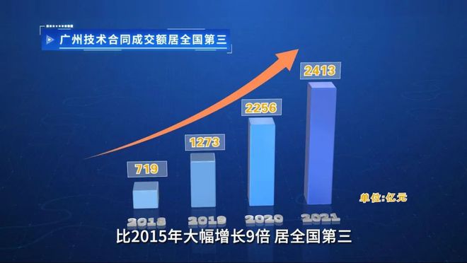 2021年技术合同成交额达2413亿元,比2015年大幅增长9倍,居全国第三。