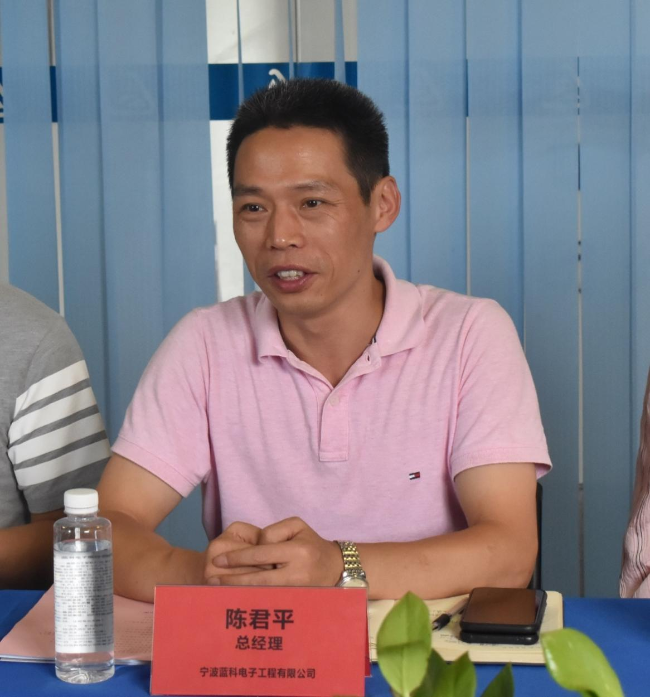座谈会伊始,陈君平致欢迎辞。他首先对各位专家顶着炎炎烈日到访宁波蓝科公司表示由衷感谢和热烈欢迎。随后,他重点介绍了企业研发实力、企业社会责任、企业品牌实力、产品技术、产品特点及核心优势等内容。他表示蓝科有两大阶段目标:第一阶段是达到蓝科=大屏的品牌目标,第二阶段是达到大屏=蓝科的品牌目标。宁波蓝科公司一直致力于智能大屏幕可视化终端显示技术的发展与革新,努力打造成为国内一流的大屏幕可视化终端显示行业平台。