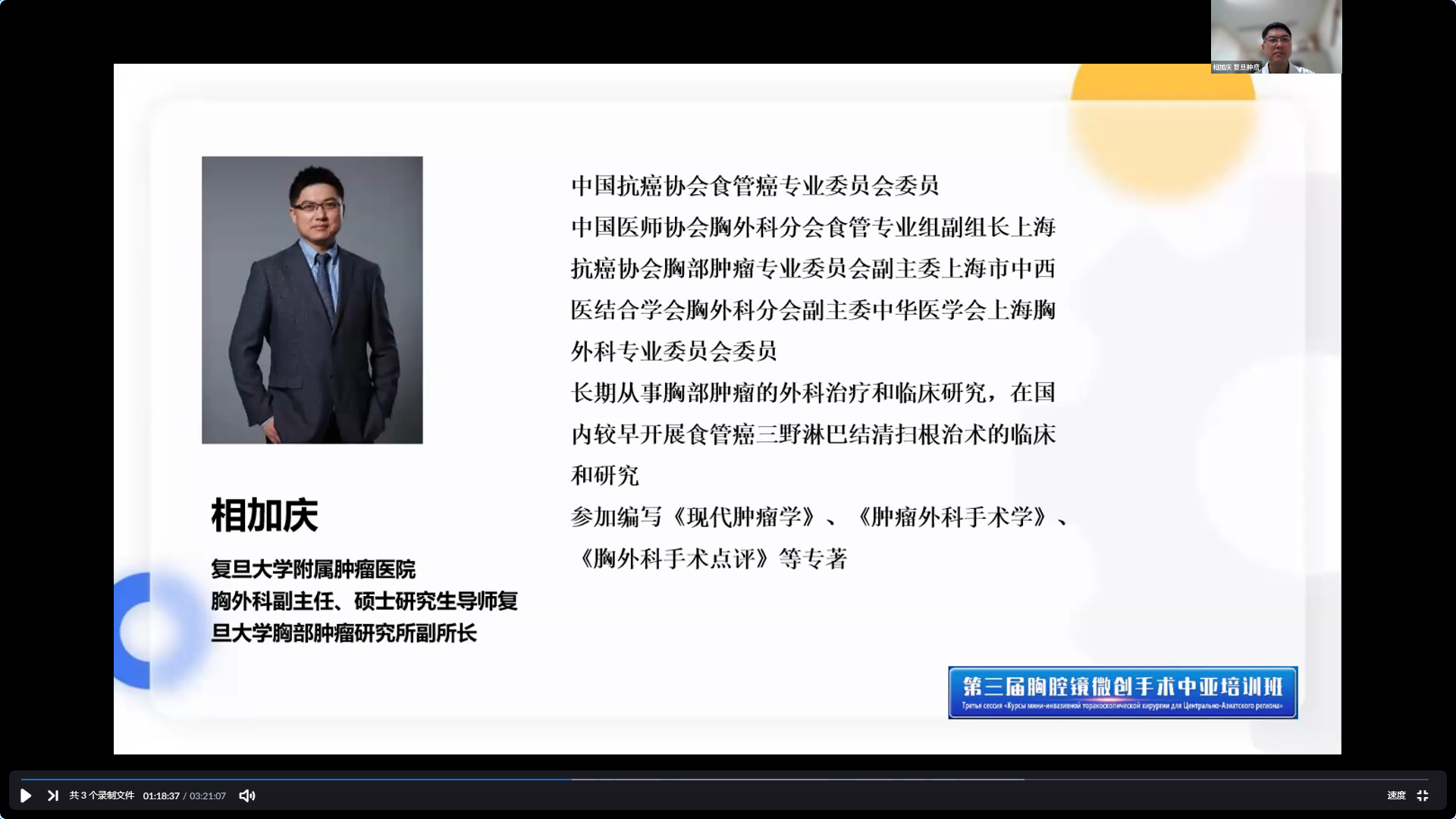 新疆医科大学第八附属医院胸外中心主任车勇作《单孔胸腔镜手术技术要点浅谈》的报告