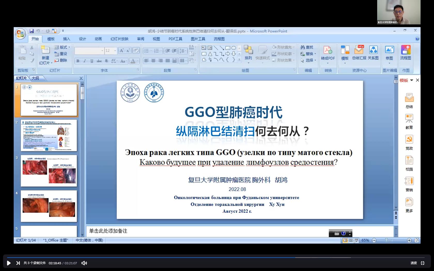 复旦大学附属肿瘤医院胸外科副主任胡鸿作《小结节肺癌时代系统性淋巴结清扫何去何从》的报告