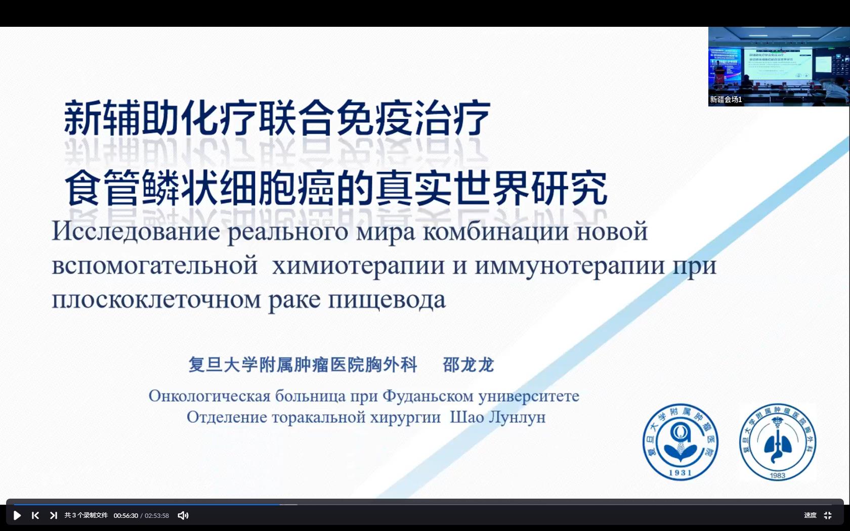 复旦大学附属肿瘤医院胸外科邵龙龙作《新辅助化疗联合免疫治疗食管鳞状细胞癌的真实世界研究》的报告