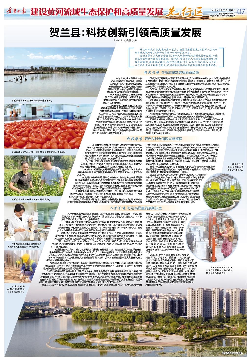 沃野孕育希望,用科技创新的杠杆撬动一方土地,贺兰县推动现代特色高效农业发展,围绕适水产业、设施果蔬、优质粮、育种等产业,应用了一批先进实用技术成果,累计推广40余项农业新技术。