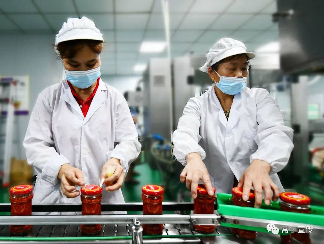 在湖南辣过瘾农业科技有限公司加工厂内,机器轰鸣,红红的辣椒堆成了小山,厂内一派繁忙的景象。工人们正紧张有序地对辣椒进行挑选、清洗、斩切,并使用有着一百多年历史的常宁酱菜制作技艺进行腌制。
