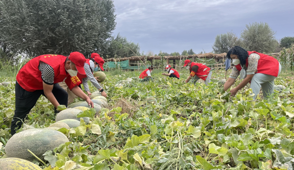 由于当前疫情形势复杂严峻,当地的哈密瓜、西瓜、蔬菜如何采摘、销售成为村民的烦心事,乌都勒斯塘村党支部针对此问题精准实施应对措施,成立突击队和志愿者服务队,采取强化防范、有序下田、分散干活的原则,帮助村民采收并联系销售渠道。