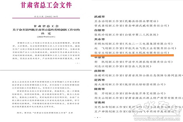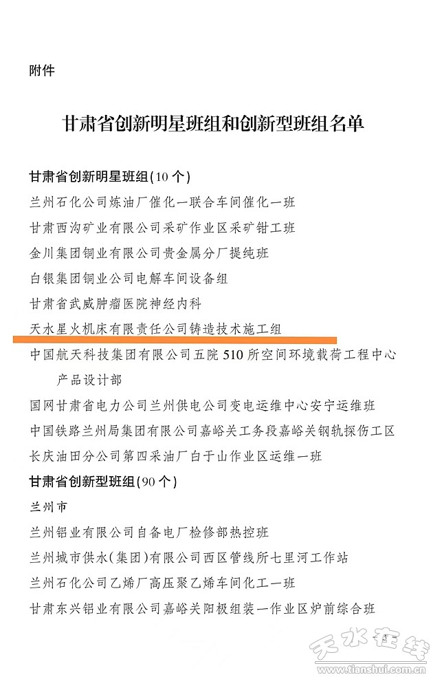 天水星火机床公司多个集体和个人荣获省市级荣誉称号