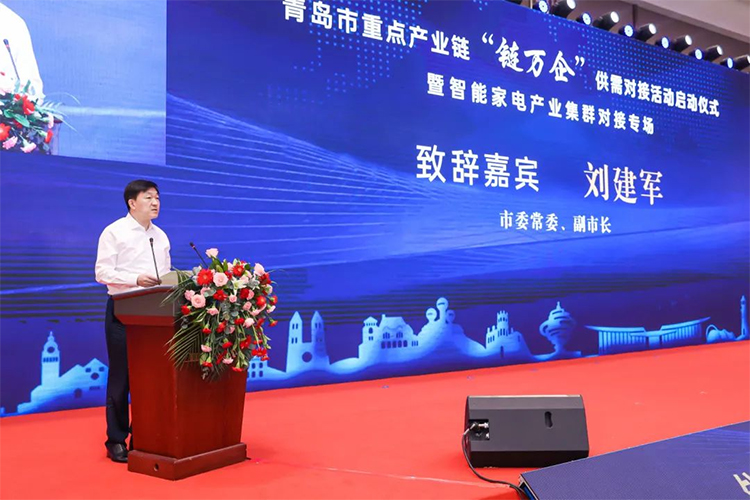 2022年8月26日,青岛市“链万企”供需对接活动启动仪式暨智能家电产业集群对接专场,在青岛国际会议中心成功举办。工业和信息化部规划司副司长姚珺,青岛市委常委、副市长刘建军、耿涛等领导,海尔集团总裁梁海山,海信集团总裁贾少谦,澳柯玛集团总经理张兴起等链主企业代表出席本次活动。青岛智能家电产业集群、广佛惠超高清视频和智能家电产业集群、无锡物联网产业集群促进机构,国家高端智能化家用电器创新中心、国家智能传感器创新中心,各区市政府、市直有关部门,以及全国70余家家电企业代表参加了本次活动。