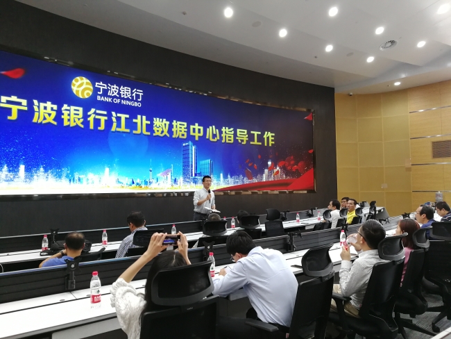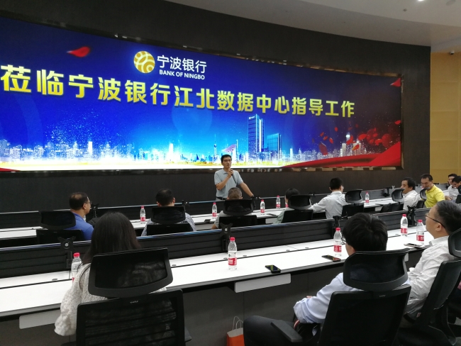 会上,宁波银行数据中心经理孙奇对江北数据中心的建设作了整体介绍。围绕国家A类机房标准和国内领先、国际接轨等建设目标,他从选址、布局设计、建设计划等方面对数据中心的建设情况进行了分享,保障数据中心安全可靠、稳定运行。会后,他带领参会人员实地参观数据中心机房,从动力楼到数据中心楼,一一讲解不同机房的作用和建设情况,参会人员对数据中心的建设规模和建设理念印象深刻。