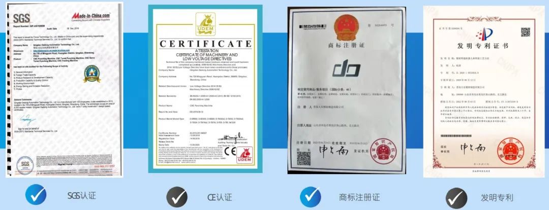 公司通过国家级高新技术企业认证、ISO9001国际质量管理体系认证、环境管理体系14000、职工健康安全管理体系18000、CE认证;高速数控转塔冲床与伺服转塔冲床列为青岛市“专精特新”产品