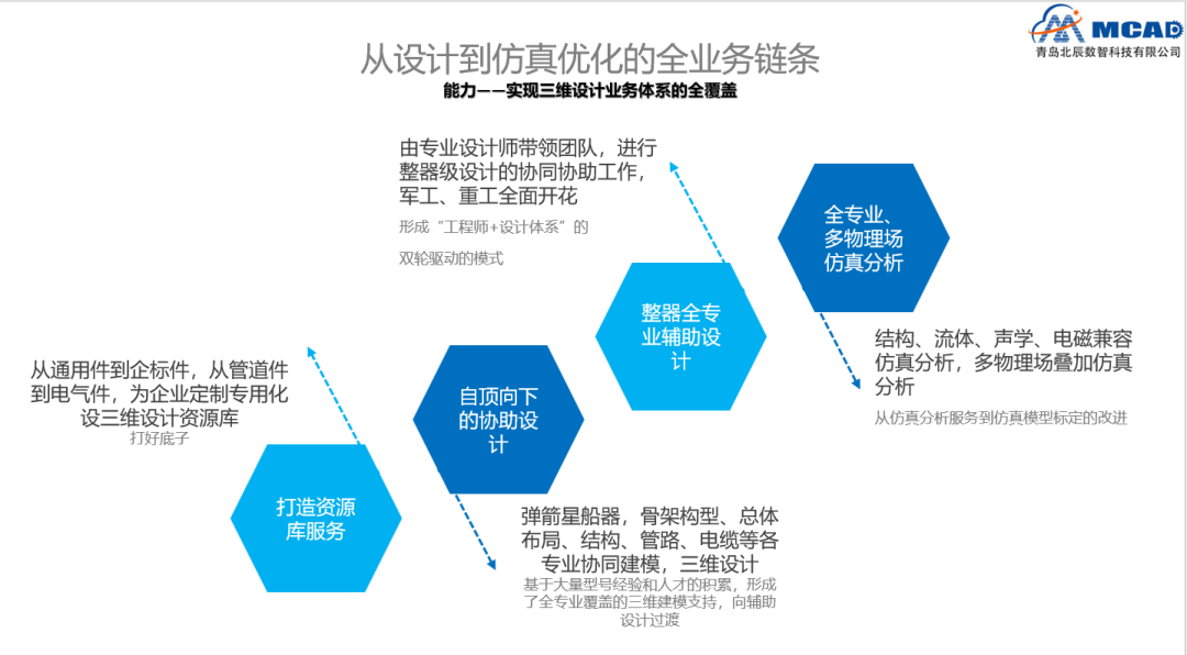 公司的主营业务不仅覆盖弹箭、卫星、飞机、天线雷达等重工领域,也为汽车、船舶、家电、轨道交通电器等行业提供解决方案。北辰数智致力于为装备制造业提供全三维数字化软件产品、技术服务及系统工程整体解决方案。