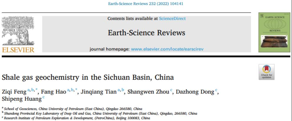 近日,我校地球科学与技术学院郝芳院士团队在页岩气地球化学研究领域取得新进展,相关成果《四川盆地页岩气地球化学特征》(Shale gas geochemistry in the Sichuan Basin, China)发表在地球科学领域国际顶级期刊《地球科学评论》(Earth-Science Reviews)。冯子齐副教授为论文第一作者,郝芳院士和冯子齐副教授为共同通讯作者,中国石油大学(华东)为第一署名单位,该研究得到国家自然科学基金创新研究群体项目和山东省重点研发计划联合资助。