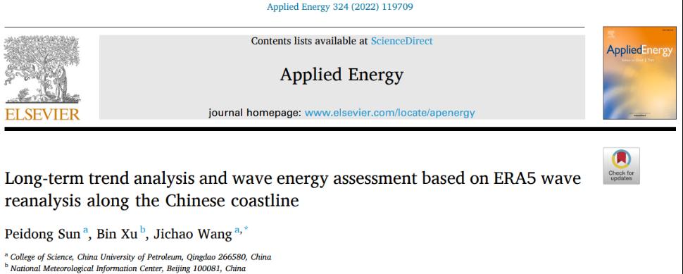 近日,我校理学院海洋数值模拟与同化团队在波浪能资源评估和海浪长期趋势研究方面取得新进展,相关成果《基于ERA5再分析数据的中国近海海浪长期趋势分析和波浪能评估》发表在能源领域国际著名期刊Applied Energy。2021级硕士生孙沛东为第一作者,王际朝教授为通讯作者,中国石油大学(华东)为第一署名单位,该研究得到国家自然科学基金和山东省自然科学基金联合资助。