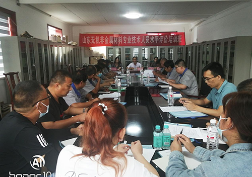 彭建简要介绍了山东无机非金属材料专业技术人员水平评价工作的背景及意义,对参加水平评价工作需要掌握的十个方面的知识要点作了重点讲解。郭良家在致辞中指出,山东无机非金属材料专业技术人员水平评价工作是学会承担职称评定职能,满足用人单位及社会各界需求,建立并完善专业工程师“同行认可”体系的改革试点,对推动行业技术进步具有重要意义。