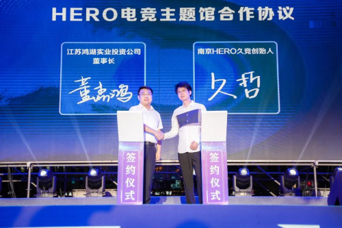 峰会现场,有迈体育旗下南京Hero久竞俱乐部还与江苏鸿湖实业投资公司签署了合作协议,将携手搭建Hero电竞主题馆,将成为广大Hero粉丝的第二主场。
