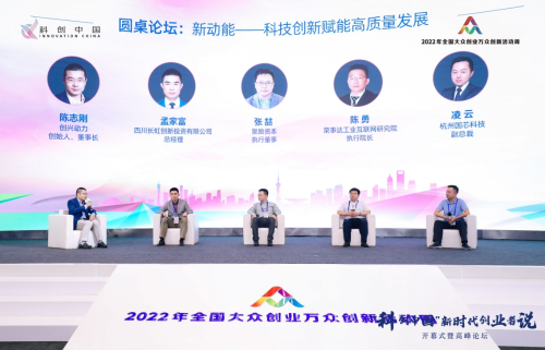 圆桌论坛环节由创兴动力创始人、董事长陈志刚主持,四川长虹创新投资有限公司总经理孟家富,聚励资本执行董事张喆,荣事达工业互联网研究院执行院长陈勇,杭州国芯科技副总裁、人工智能事业部总经理凌云以“新动能——科技创新赋能高质量发展”为主题,围绕科技经济融合、创新要素融通、创业带动就业等热点话题,为大家分享了创新创业的成长经历与成功经验。