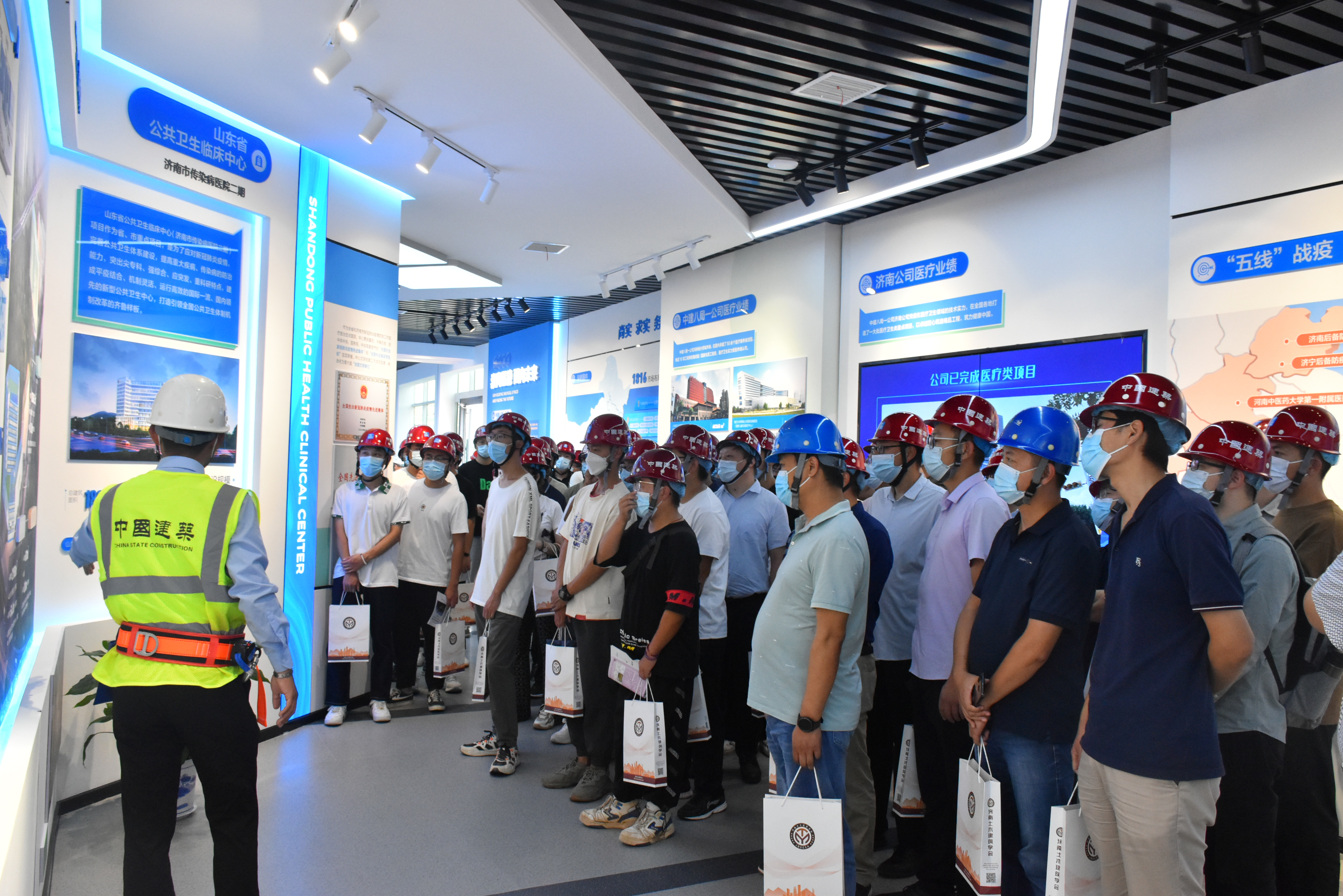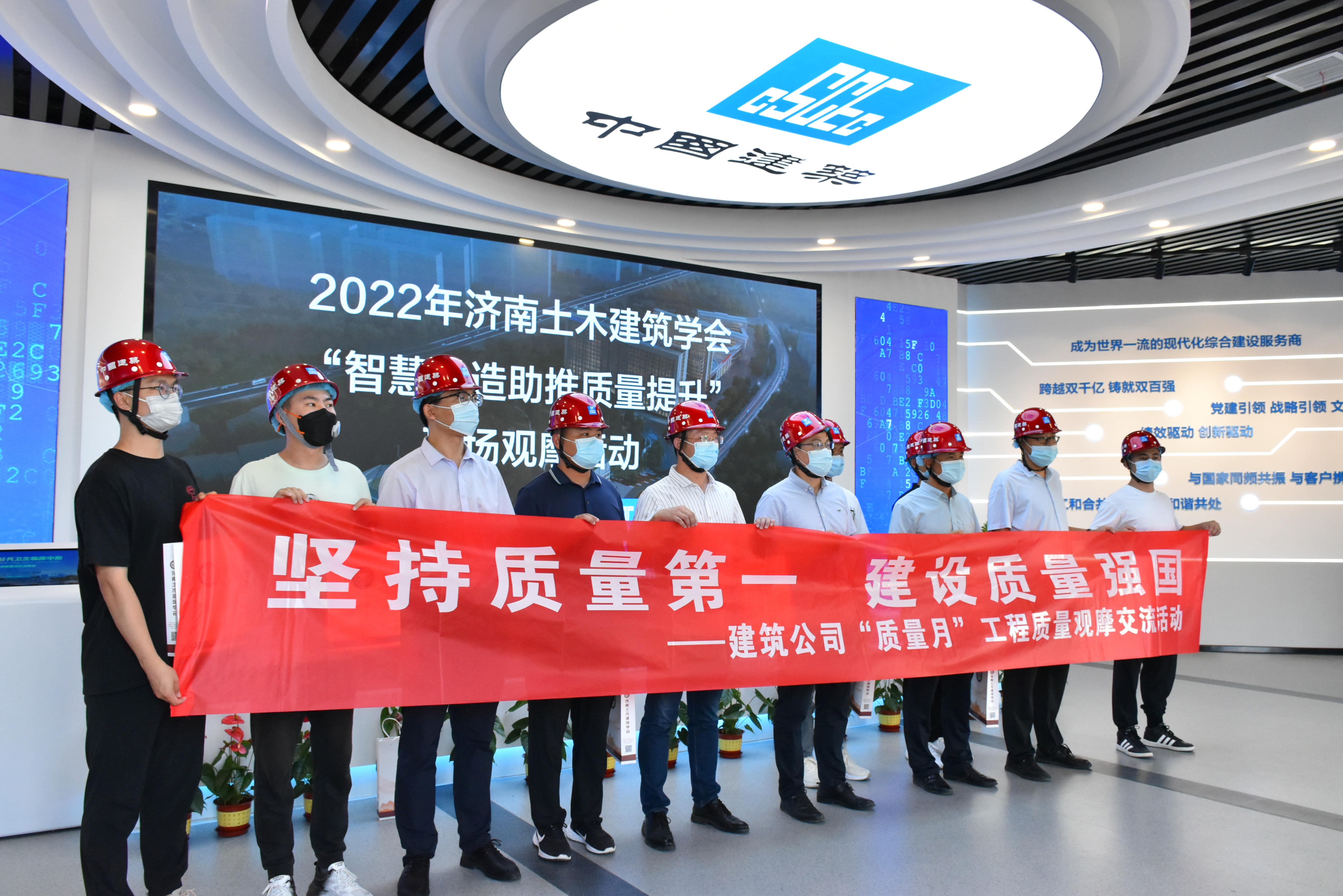 九月是全国第45个“质量月”。为贯彻落实“质量强国”战略,根据市住建质量月活动的相关要求,济南土木建筑学会举办了主题为“科技创新、助推工程质量提升”质量月专项观摩交流活动。2022年9月16日下午,“智慧建造助推工程质量提升现场观摩交流会”在中建八局第一建设有限公司承建的山东省公共卫生临床中心举行。35家会员单位约300人分三批次参与本次观摩会。