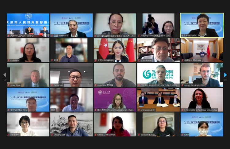 (通讯员 王柳青)9月20日,为庆祝土耳其晔迪特派大学孔子学院成立五周年,由南开大学、晔迪特派大学和天津市人民对外友好协会共同举办的“一带一路”中土语言文化经贸交流学术研讨会于线上举办。中国驻土耳其大使馆公参李勤、中国驻伊斯坦布尔代总领事吴健、土耳其驻华使馆教育参赞蒋苏、天津市人民对外友好协会副会长黄春艳、南开大学副校长王磊、土耳其晔迪特派大学副校长法特玛、南开大学跨文化交流研究院院长陈洪教授出席开幕式并致辞。南开大学国际合作与交流处负责人主持开幕式。来自中土两国教育、文化、经贸等领域的专家学者60余人齐聚云端,共同研讨交流合作经验。