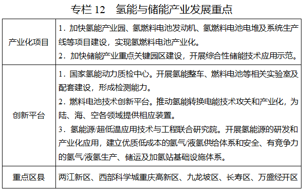 高效电解制氢、提纯、规模化储氢、低温液态储氢、快速输配氢等技术研发及产业化应用。积极引进培育质子交换膜、双极板等燃料电池电堆关键材料生产企业。前瞻布局氢燃料发电站技术研发,有序推进加氢站规划和建设。探索储能融合发展新场景,开发面向分布式新能源、微电网、大数据中心、5G基站、充电设施等终端用户的电池产品。引进培育飞轮储能、钠离子电池、液流电池等先进储能技术企业。
