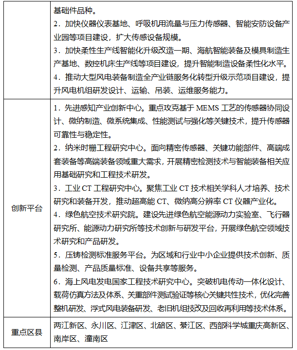 顺应装备高端化、智能化、成套化发展趋势,聚焦汽车、3C(计算机、通讯和消费电子)、无人机等产业发展迫切需求,进一步提升关键基础件的精度和可靠性,提升传感器和智能仪器仪表产业发展能级,提升新能源装备竞争优势,推动智能制造装备迈向中高端水平,在若干细分领域打造西部领先、国家重要的产业集群。