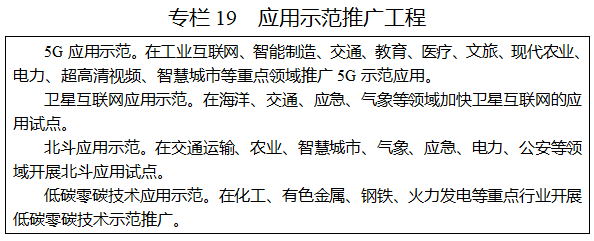 加快推进5G、卫星互联网应用场景建设,培育“5G+”“卫星互联网+”新模式新业态。推动北斗与人工智能、物联网、区块链等新一代信息技术深度融合,加快在关键领域和重要行业的融合应用。积极推动石墨烯在储能、新型显示、半导体材料、传感器、生物医学等领域应用示范,工业软件在汽车、装备制造等领域应用。积极争取创建低碳技术创新综合示范区,促进低碳技术推广应用。研究支持氢燃料电池车尤其是氢燃料电池商用车的应用推广。落实首台(套)重大技术装备、首批次新材料、首版次软件应用支持政策。