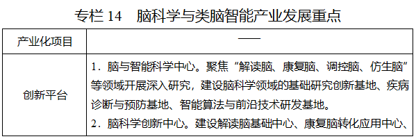 主动对接面向2030年的国家重大科技创新部署,聚焦脑科学、类脑智能等前沿科技和产业变革领域,发挥我市在基础脑科学、认知科学等方面优势,开展脑认知原理解析、脑重大疾病机理与干预策略、类脑计算与脑机融合、脑智发育和退行机制研究。以高水平临床医学研究和医疗专科建设为抓手,积极打造国际领先、特色鲜明的脑科学领域技术创新平台和创新中心,开展前沿医疗技术转化与临床应用建设。针对脑瘫儿童、老年痴呆患者、亚健康人群等特定人群需求,积极构建脑健康促进产品发展生态。大力开发临床神经疾病救治智能检测仪器、神经损伤修复新材料、超分辨脑活动可视化技术、大脑生物物理特征和运行模式解析算法等领域的软硬件产品,推动脑科学与类脑智能产业同生物医药、人工智能、文化创意等产业融合发展。