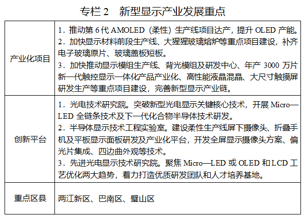 顺应新型显示柔性化、矩阵化、微型化等技术发展趋势,积极发展下一代新型显示产品。以面板制造为牵引,加快产业集聚,积极打造国家级新型显示产业集群。