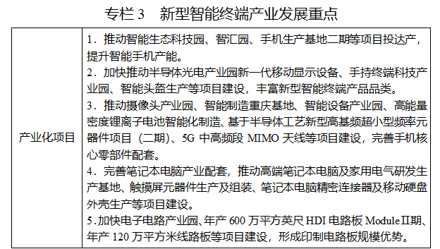 应对笔记本电脑、手机等产业发展面临的市场瓶颈和产业链供应链潜在风险,积极寻找新的产业增长点,大力引育整机产品及核心零部件企业,巩固智能终端优势,打造全球最大智能终端生产基地。