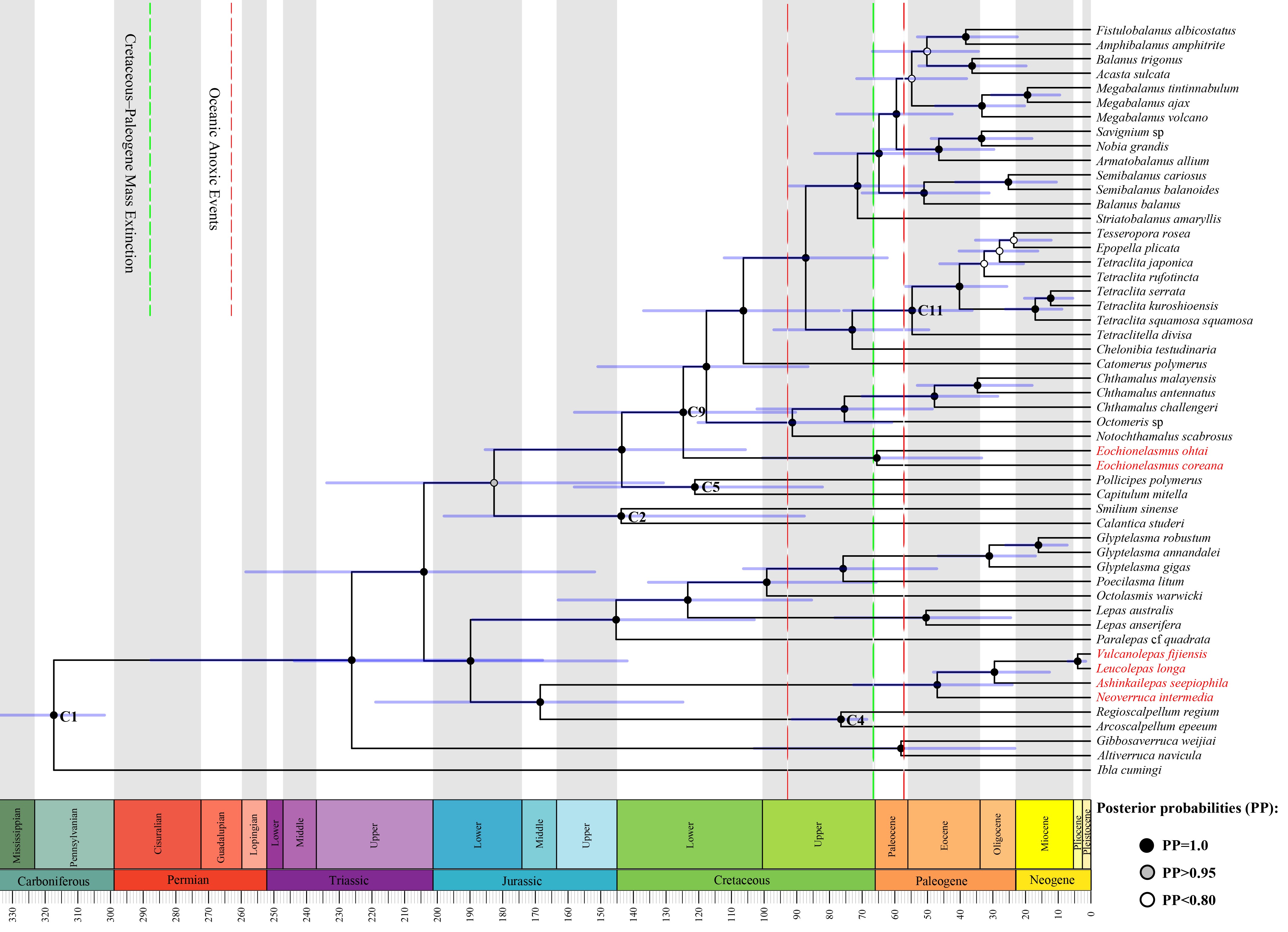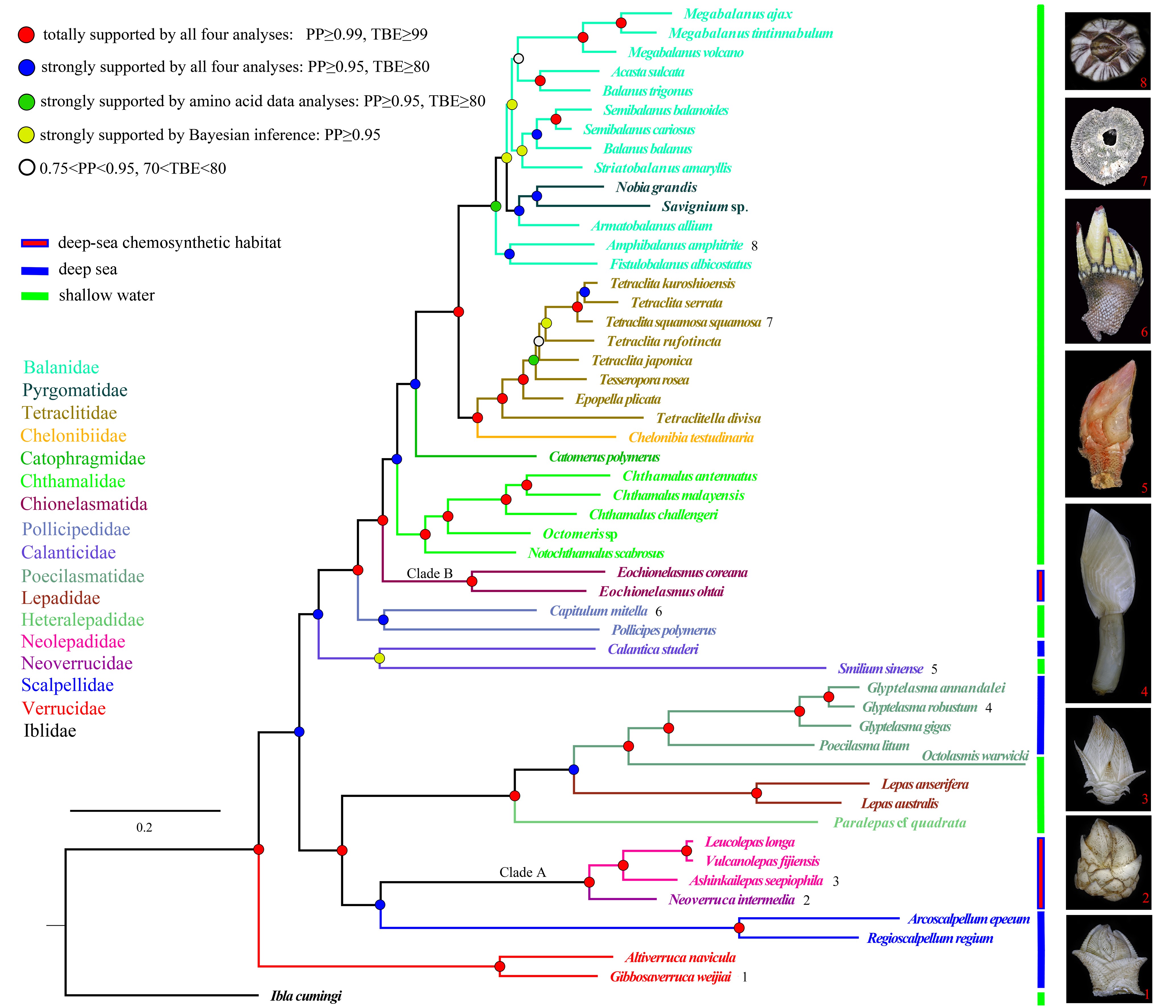 文章信息:Gan Z, Jones DS, Liu X, Sui J, Dong D and Li X (2022) Phylogeny and adaptative evolution to chemosynthetic habitat in barnacle (Cirripedia: Thoracica) revealed by mitogenomes. Front. Mar. Sci. 9:964114. doi:10.3389/fmars.2022.964114