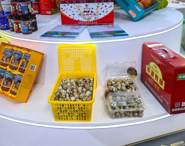“别看鹌鹑小,它浑身都是宝。鹌鹑肉是滋补品,鹌鹑蛋更是被称为动物中的人参…”博湖县展位的工作人员正在向过往客商介绍着本地的鹌鹑蛋。