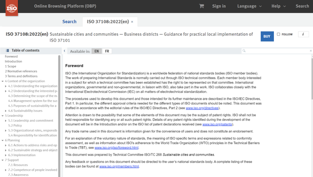 2015年9月,在国家标准委的支持下,中标院、法国标准化机构、北京未来科学城、法国巴黎韦利济市和御道咨询,就中法商务区可持续发展标准化合作事宜达成广泛共识,并签署了《中法商务区可持续发展标准化合作意向书》。经过三年七次工作组会议,于2019年4月正式立项ISO/NP 37108(城市和社区可持续发展 商务区 ISO37101本地实施指南)。