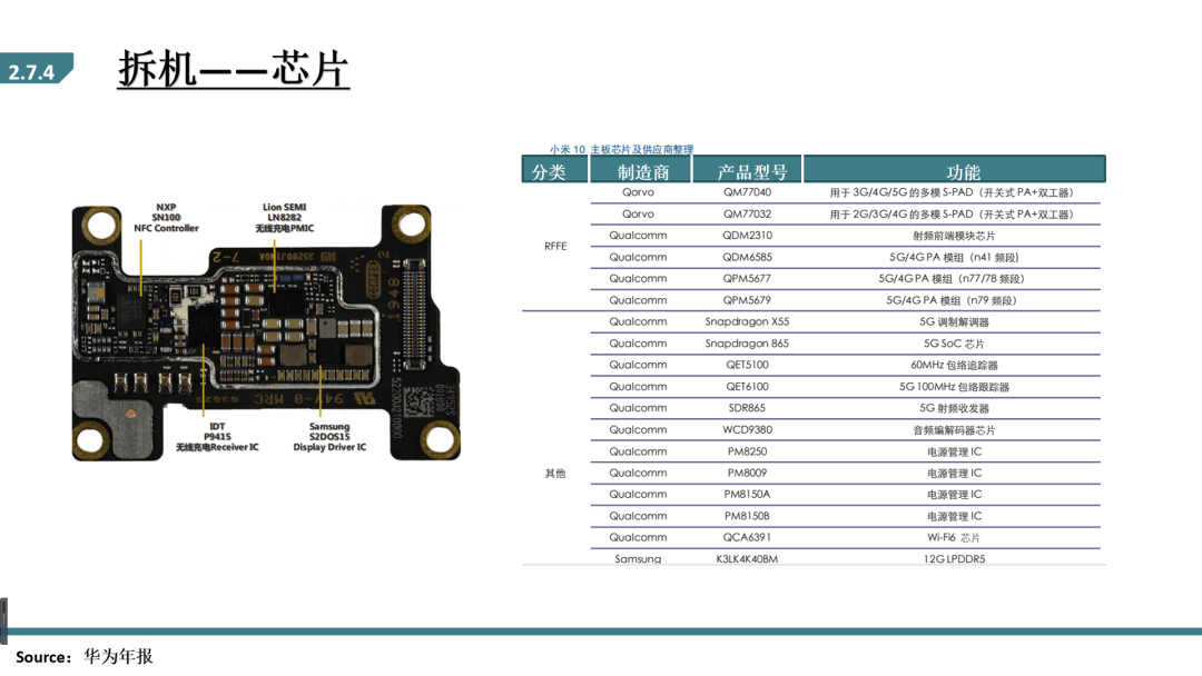 在图中,是小米10搭载的芯片系统,值得关注的芯片包括: