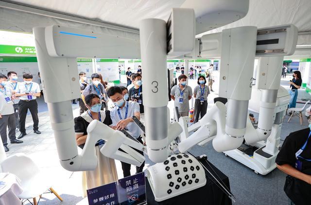 在双创成果展上,深圳精锋医疗展示自助研发的多孔腔镜手术机器人,通过应用机器人技术、成像技术和数字技术进行微创手术。