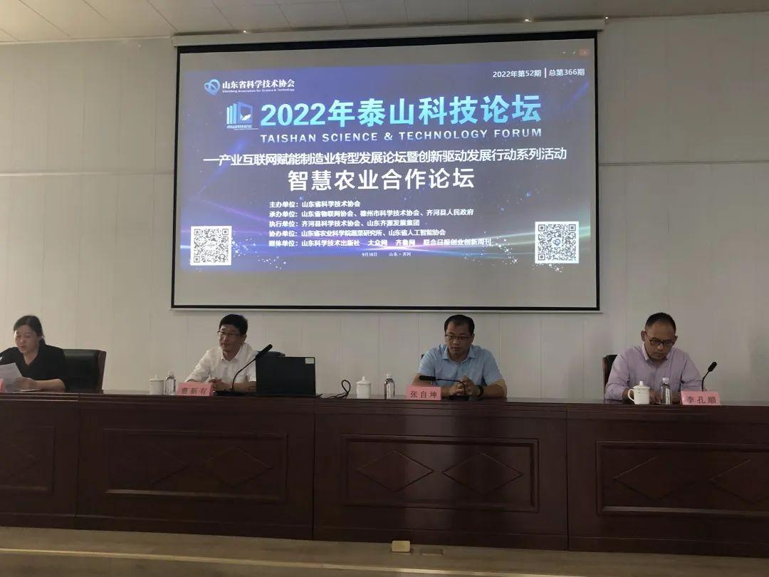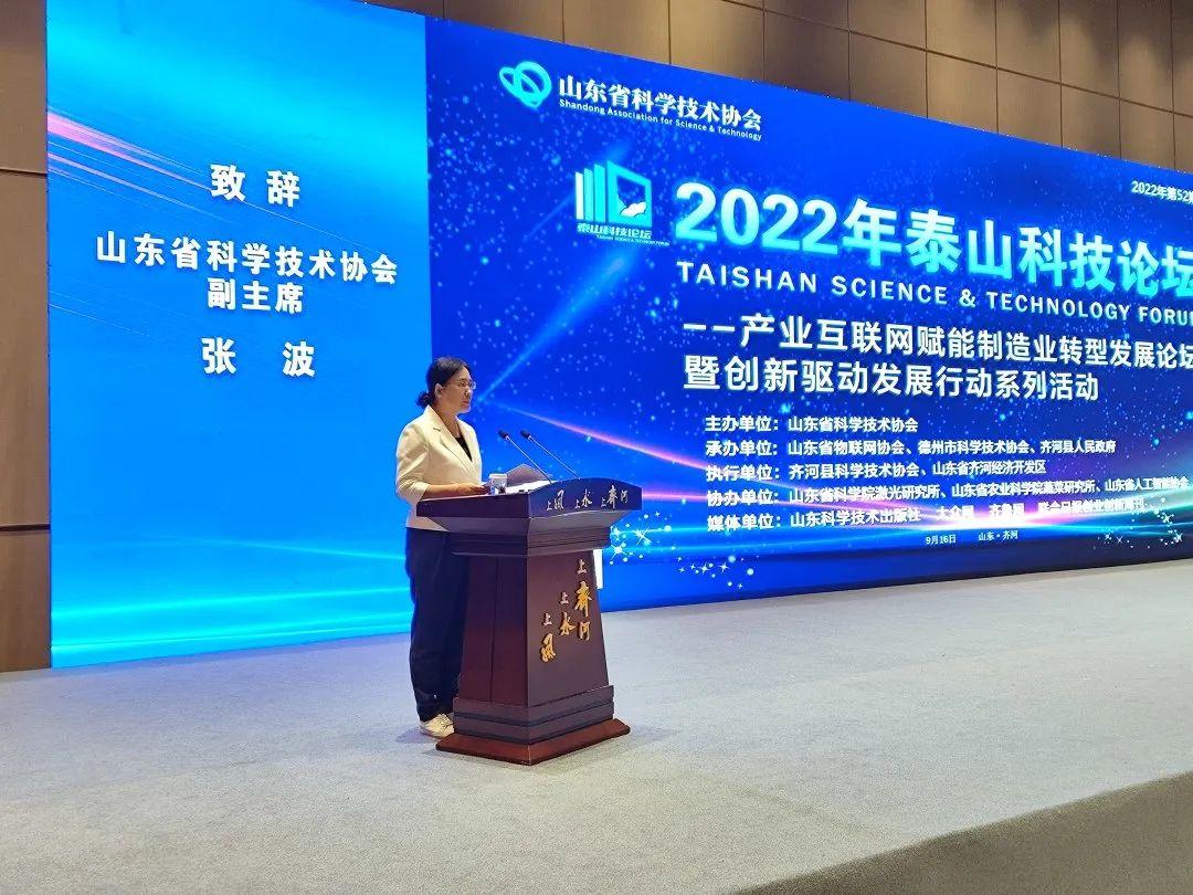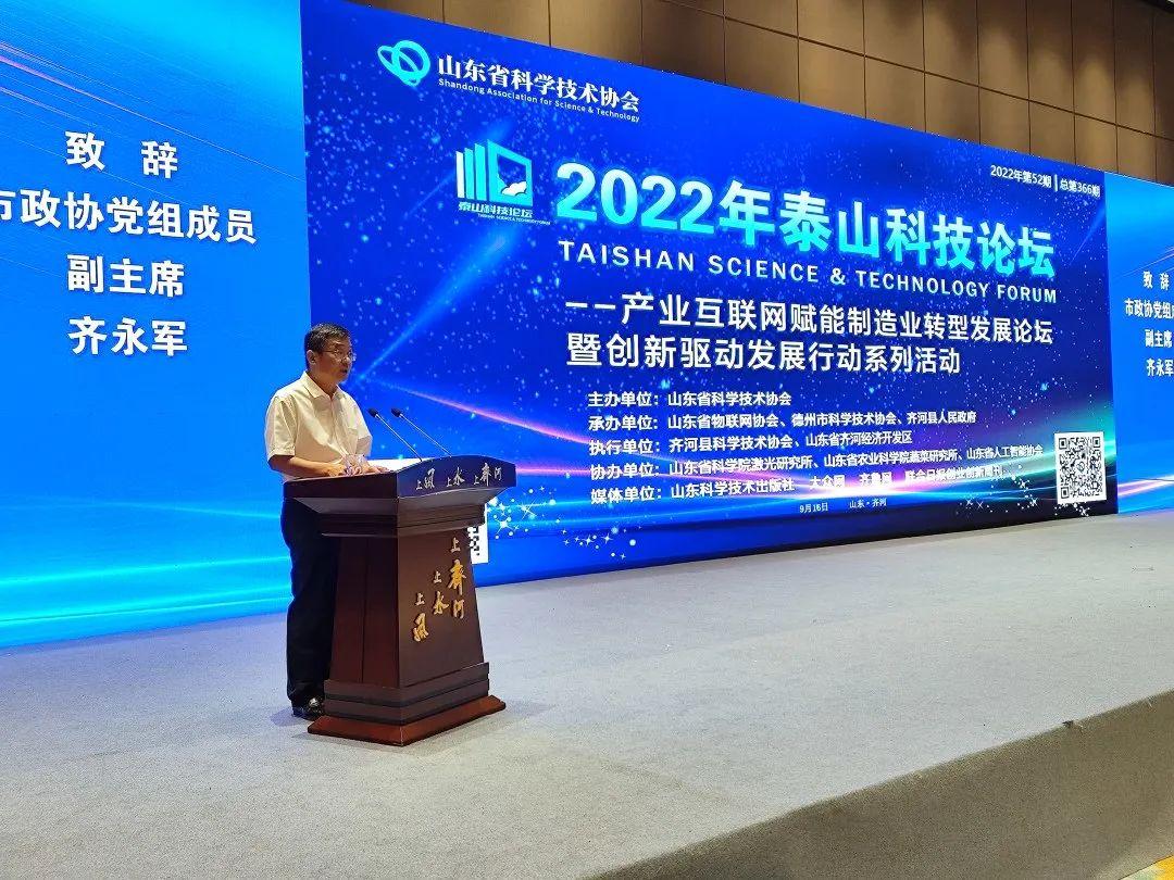 9月16日,2022年第52期(总第366期)泰山科技论坛—产业互联网赋能制造业转型发展论坛暨创新驱动发展行动系列活动在德州市齐河县成功举行。本次活动由产业互联网赋能制造业转型发展主论坛与智慧农业合作论坛、激光产业智能化合作论坛两个分论坛组成。采取学术讲座与产学研对接结合,线下与线上同步参会的模式进行。