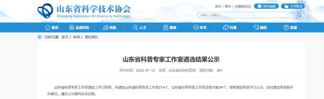 近日,山东省科协公示了山东省科普专家工作室遴选结果,以钱恒会长为领衔专家的山东省物联网协会科普工作室成功入选。