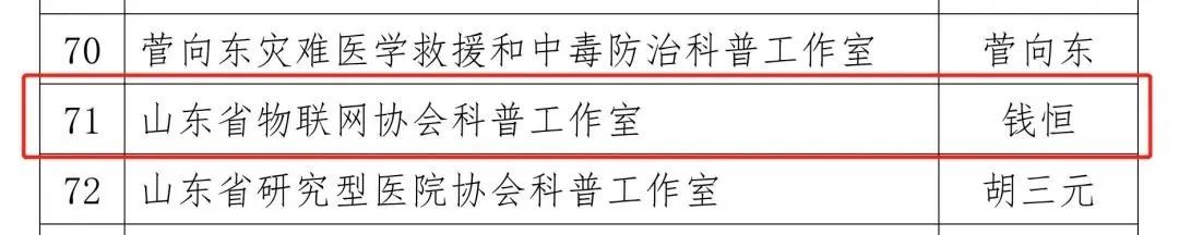 山东省物联网协会科普工作室成功入选山东省科普专家工作室名单