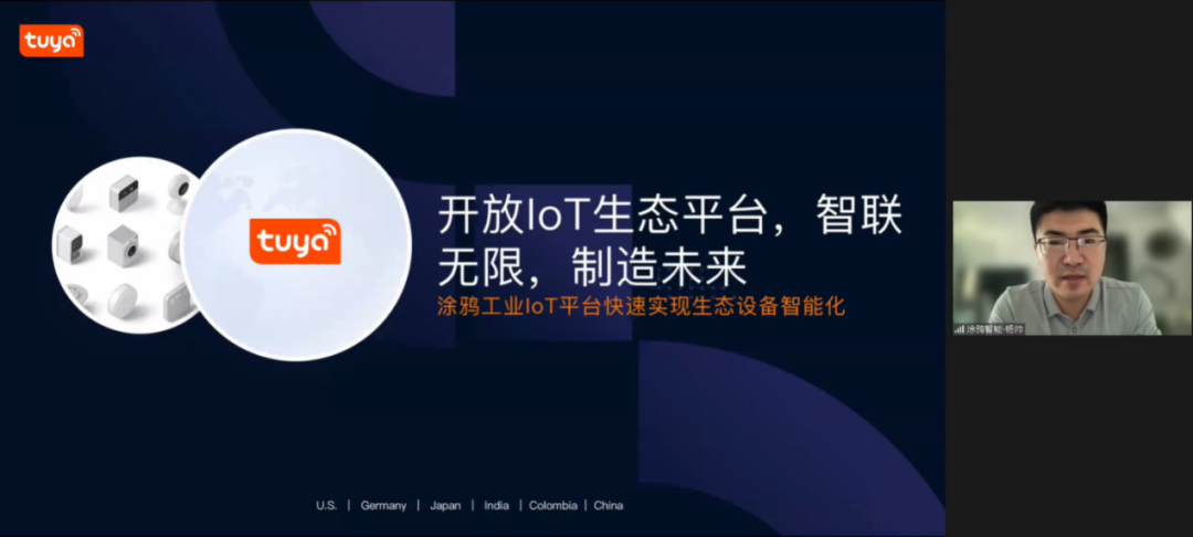涂鸦智能智慧工业华东商务负责人杨帅分享了通过一个工业IoT平台联通智能工业设备与智能生产制造,实现智联上云的智能车间,进而驱动智能工厂、仓储、园区等工业全场景生态互联的案例。