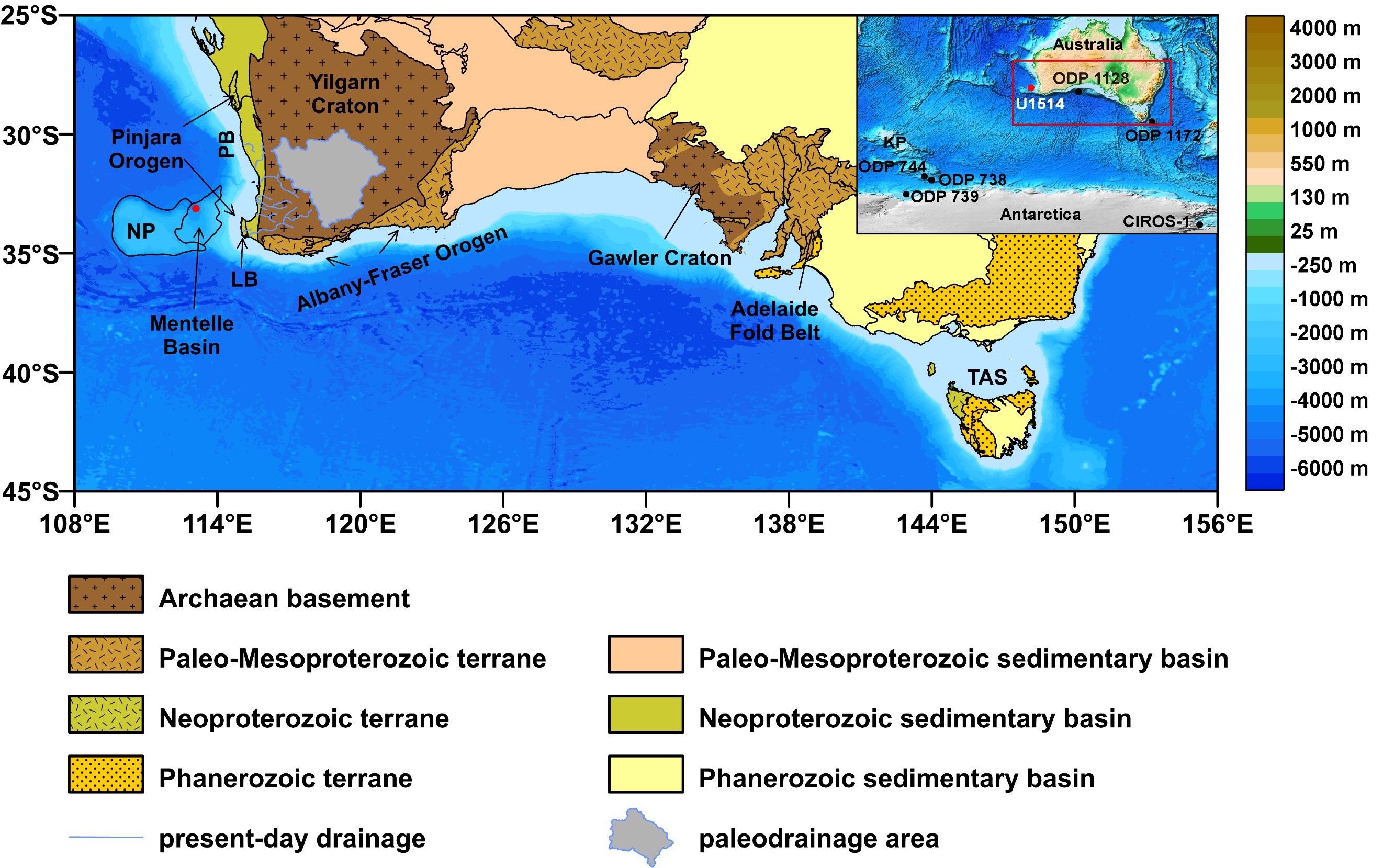 图1 U1514站位地理位置分布及澳大利亚构造分区简图