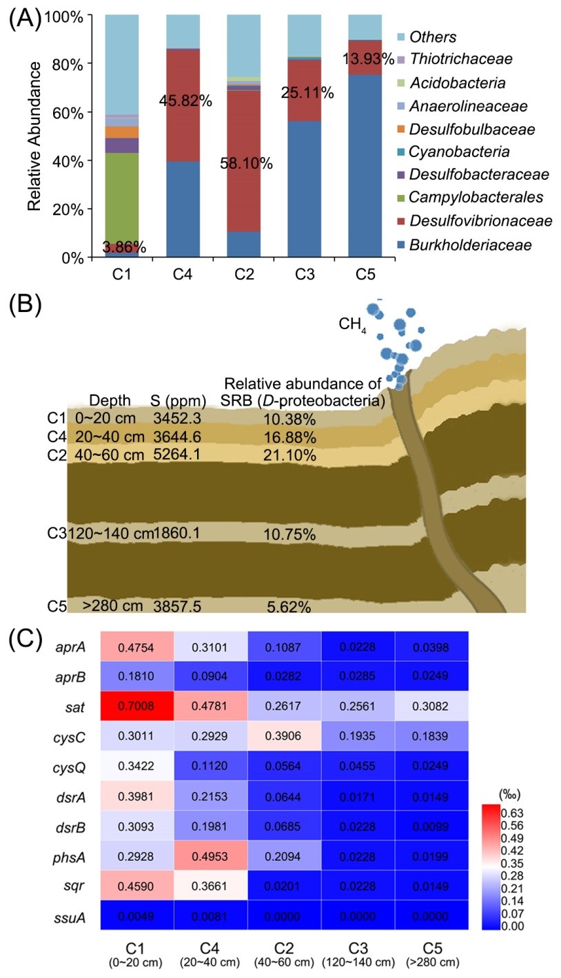 图4 宏基因组结果显示phsA和sqr的同源基因在深海硫酸盐还原菌中广泛存在