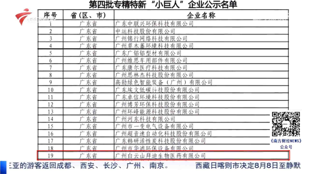 今年8月,国家工业和信息化部第四批专精特新“小巨人”企业名单公示,广州白云山拜迪生物医药有限公司通过层层审核,入选榜单,荣获国家级专精特新“小巨人”企业称号!据悉,广州市有55家企业上榜。