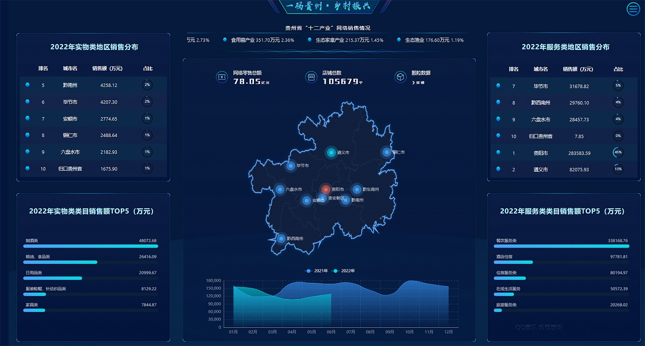 今年2月,贵州省委、省人民政府印发的《关于做好2022年全面推进乡村振兴重点工作的实施意见》中提出,持续推进农村一二三产业融合发展,做大做强“一码贵州”电商平台;今年4月,“一码贵州”入选了商务部商业科技创新应用优秀案例;近日,“一码贵州”成功入选工信部2022年新型信息消费示范项目名单。周凯表示,“一码贵州”能够入选两部委示范项目名单,是公司多年深耕电商领域、筑牢智慧商务数字基座的结果。接下来,贵州电子商务云将继续完善电商平台服务体系,强化产销对接,利用技术优势,为“黔货出山”的传统企业“上云”提供技术支撑,积极探索更多的应用场景,为贵州推动大数据与实体经济深度融合提供智慧方案。