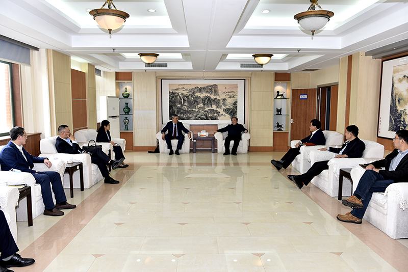 10月14日,青岛海湾集团有限公司副总经理、总工程师张英民,青岛海湾化学股份有限公司党委副书记、总经理高自建,青岛海湾化学股份有限公司副总经理郎需霞一行来校交流,山东科技大学校长姚庆国、副校长张建会见客人。
