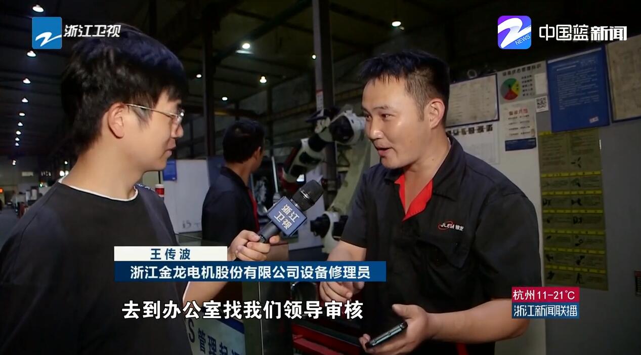 浙江金龙电机股份有限公司设备修理员王传波说:“以前我们都是纸质的,他填了单子,到办公室找我们领导审核,然后领导再安排我们检修,现在就没有这道工序了。”