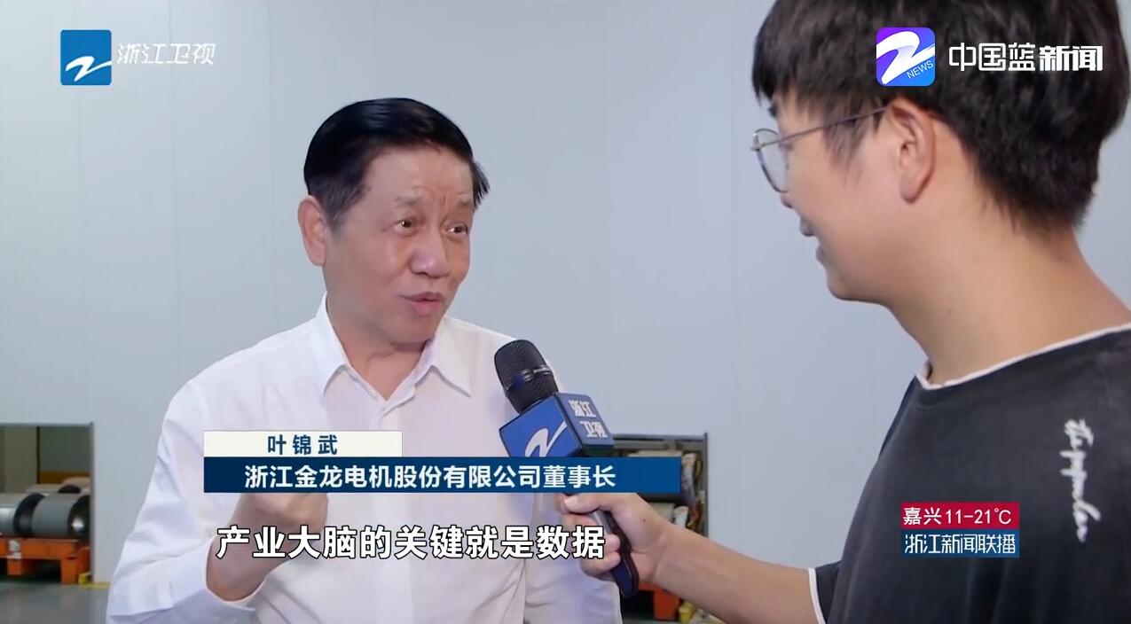 浙江金龙电机股份有限公司董事长叶锦武说:“现在我就能看得见,产业大脑的关键就是数据,大数据形成了,我们可以分析。”
