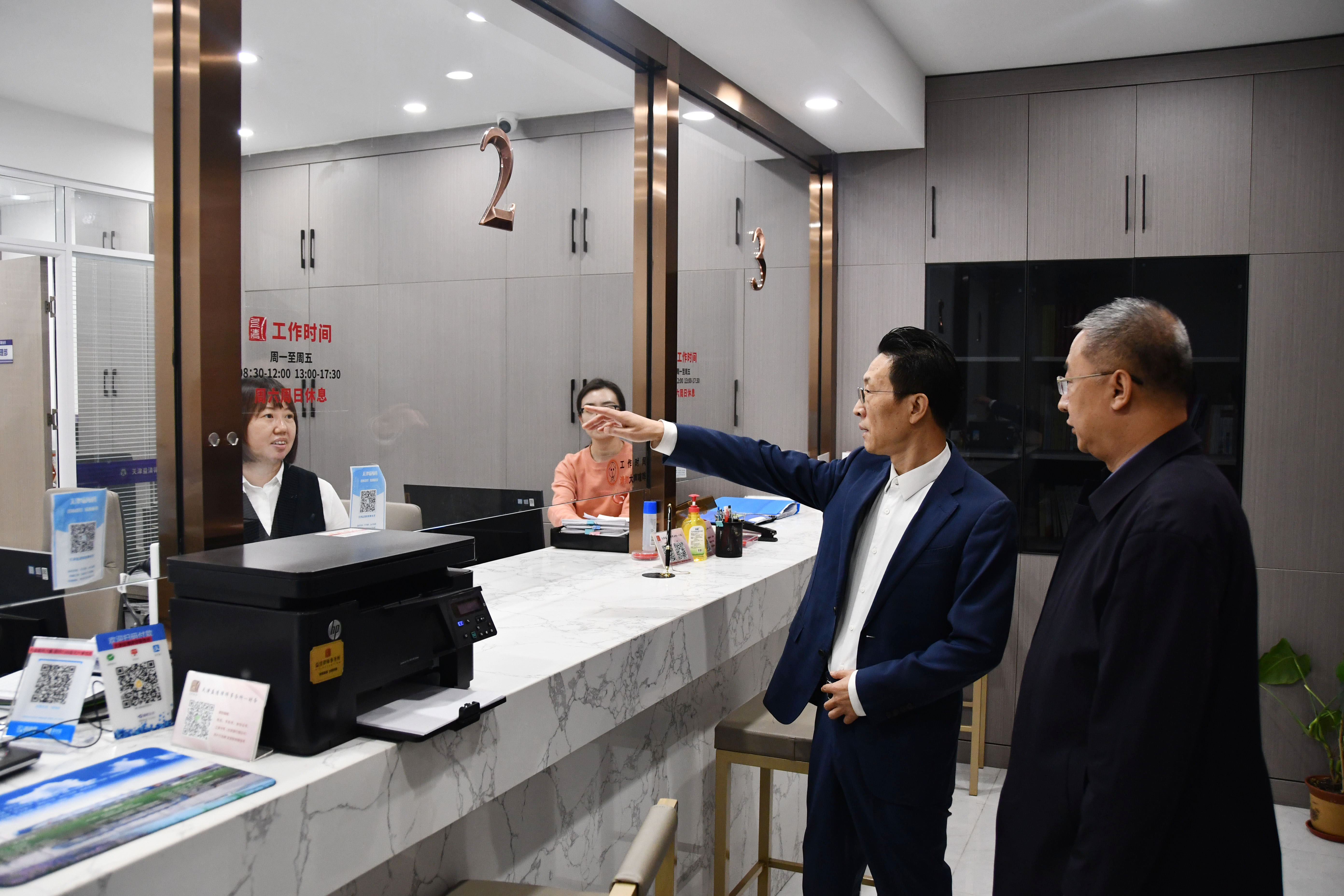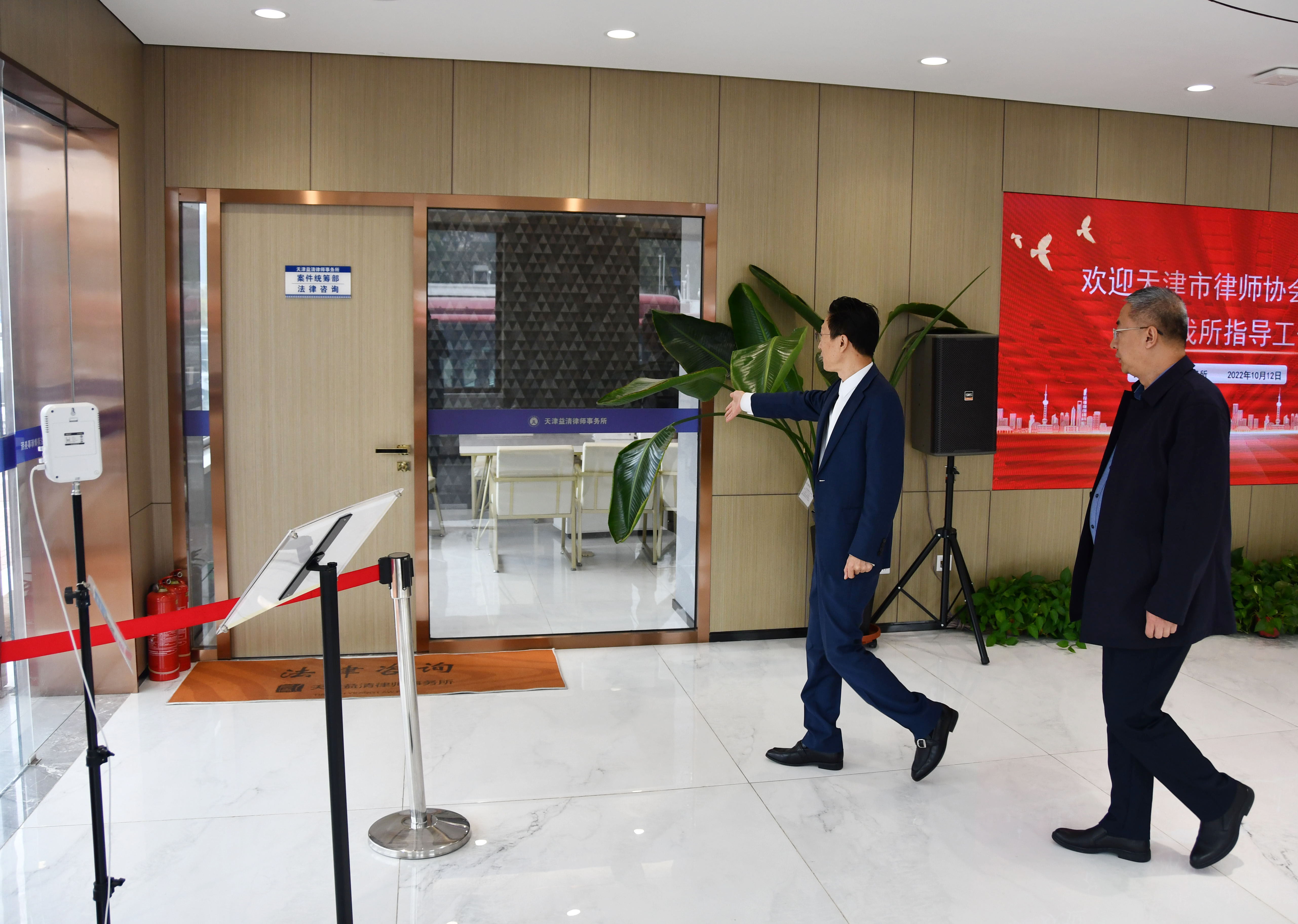 2022年10月13日下午,天津市律师协会秘书长冯志东、综合部主任李昂、办公室二级主管王暄然一行莅临我所指导工作。