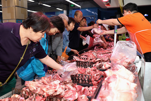 市民在购买猪肉。(新华社记者 王晓/图)